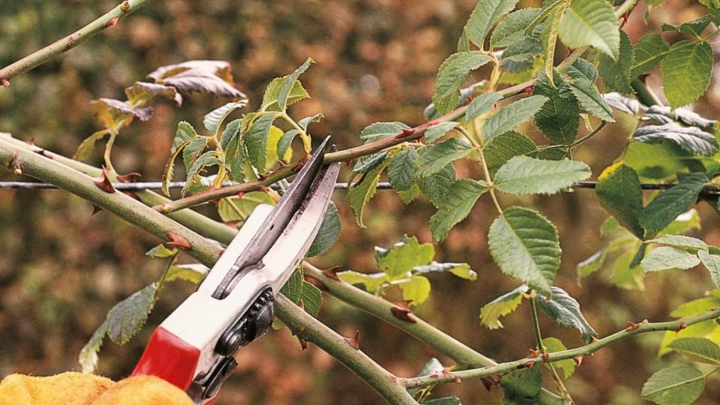 - Плетистые розы требуют более аккуратного подход: необходимо убирать только концы и слабые боковые ветки.