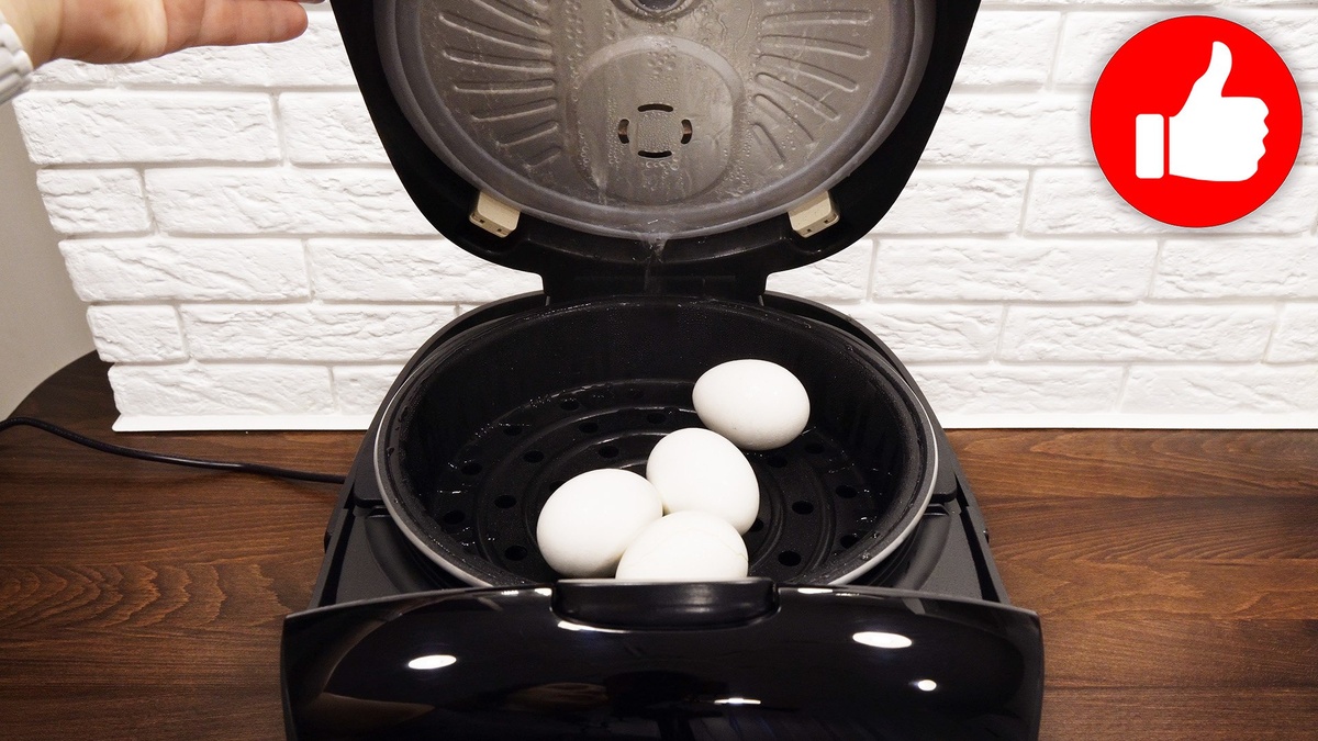 Начните с приготовления яиц. В чашу мультиварки налейте холодную воду и разместите корзину для пара с яйцами. Установите режим «На пару/Пар» и готовьте 10 минут. После этого погрузите яйца в холодную воду, чтобы они быстрее остыли, а затем очистите их.