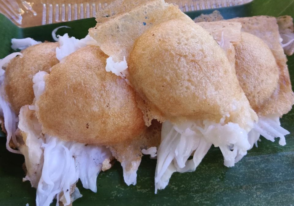 - Описание: Это миниатюрные круглые панкейки, приготовленные из рисовой муки и кокосового молока.