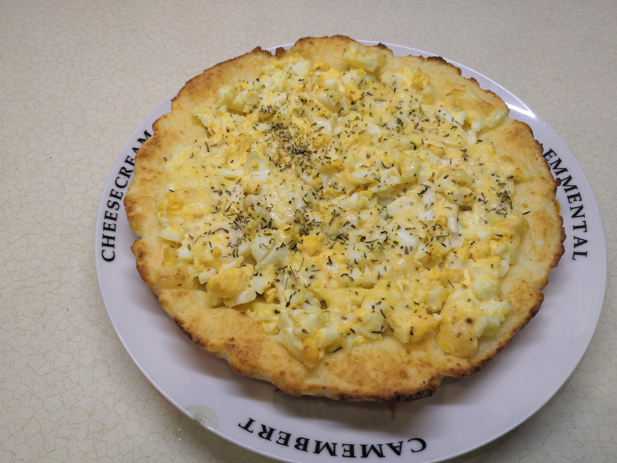 Пока основа запекается, подготовить начинку: варёные яйца нарезать мелкими кусочками, сыр натереть. В отдельной миске тщательно смешать яйца, сыр, греческий йогурт и немного соли. Добавить любимые специи и свежую зелень по вкусу.
