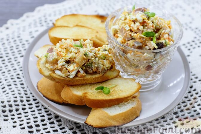 - Закуска из селёдки с сыром — идеальный вариант для подачи в тарталетках или на хрустящих тостах. Эта комбинация солёной селёдки, нежного плавленого сыра, отварных яиц и сладковатой моркови создаёт замечательное сочетание вкусов.