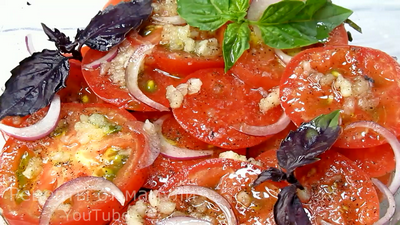 Параллельно с настоем маринада можно перейти к овощам. Рекомендуются розовые помидоры, которые всегда радуют вкусом. Нарежьте их кружочками, затем нарежьте лук по вашему вкусу — кружками или другими формами. Зелень можно выбрать по своему желанию: укроп, петрушка или даже кинза. Базилик станет отличным акцентом в этом блюде!
