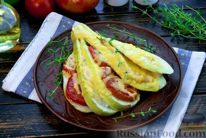 Веер из кабачков: Нежные пластинки кабачков, в которые выкладываются куриное филе и кружочки помидоров, запекаются под шапкой из тёртого сыра. Получается невероятно сочно и аппетитно!