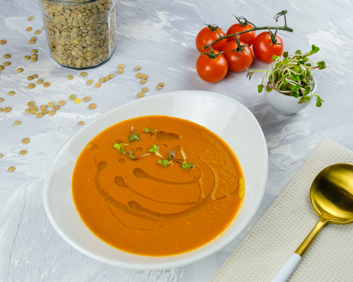 Чечевичный суп-пюре привлекает своей теплой, золотистой окраской, создающей уютную атмосферу в любое время года. Его можно спутать с тыквенным вариантом, но именно чечевица и помидоры придают этому блюду уникальный оранжевый оттенок и насыщенный вкус. Он готовится довольно просто, а если отсутствует блендер, можно обойтись и без него, получив ароматную похлёбку. Так стоит ли игнорировать это блюдо? Определенно нет!