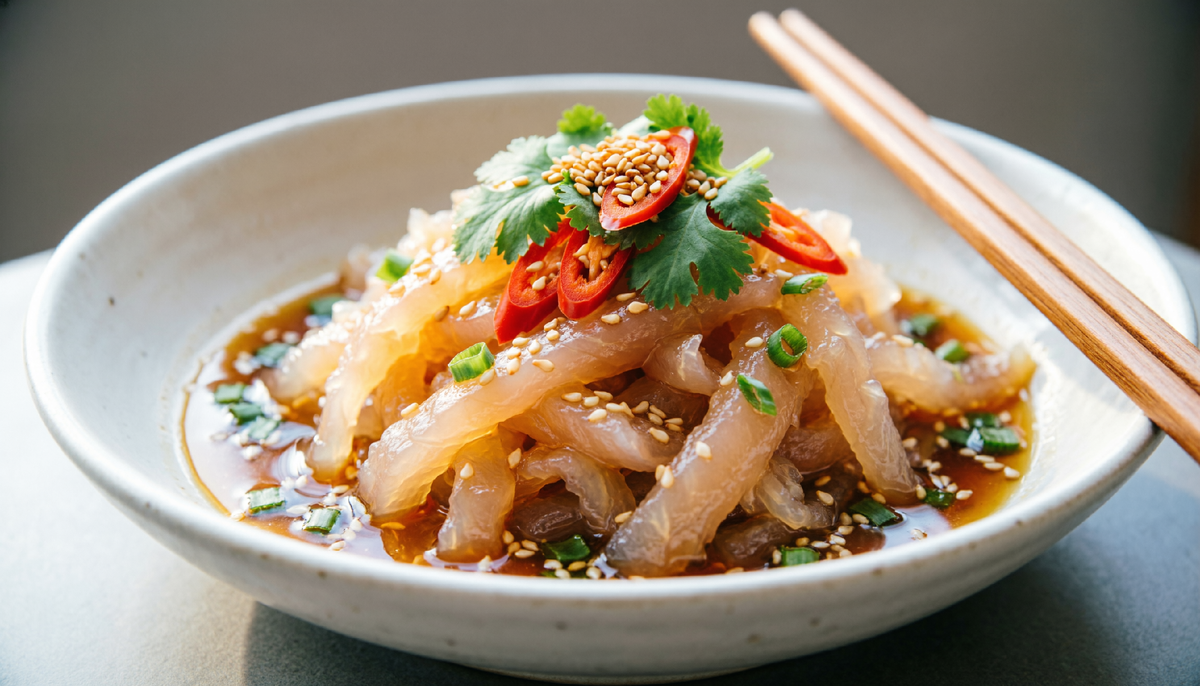 Сложно представить, что блюдо с хрустящей текстурой может одновременно быть настолько необычным и ароматным. Именно такой относится салат из медузы, который в Азии более двух тысяч лет ценится как «хрустальное мясо». Богатый морскими нотками, он стоит на пороге признания в различных кухнях мира, а в сочетании с кисло-сладким соусом становится настоящим украшением любого стола.