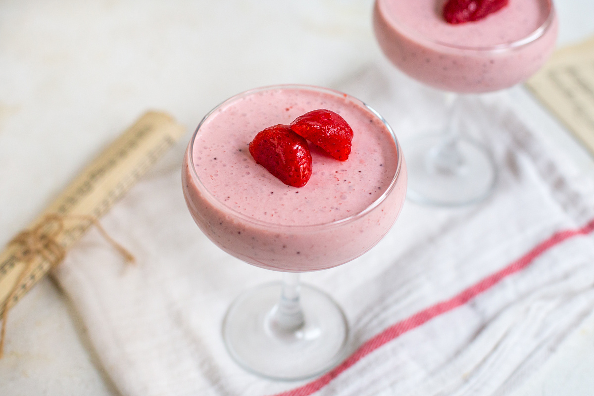 Для начала, в блендере обработайте замороженную клубнику с половиной сахара до получения однородного пюре. Не забудьте оставить несколько ягод для декора!В небольшой кастрюле подогрейте сливки вместе с оставшимся сахаром и ванильным сахаром, тщательно перемешивая, пока сахар не растворится.Когда сливочная смесь готова, добавьте туда клубничное пюре и перемешайте. Важно, чтобы смесь не была слишком горячей.Проверьте температуру и добавьте желатин, поддерживая средний огонь еще 2-3 минуты, регулярно помешивая, чтобы он полностью растворился.Снимите с огня и дайте немного остыть, затем добавьте греческий йогурт и перемешайте до получения однородной массы, для этого можно использовать блендер.Разлейте получившуюся массу по порционным стаканам и поставьте в холодильник минимум на 2-3 часа, чтобы желе хорошо застыло.Готовое желе украсьте оставшимися ягодами клубники перед подачей.Этот десерт не только порадует вас своим вкусом, но и станет полезным дополнением к вашему рациону. Приятного аппетита!