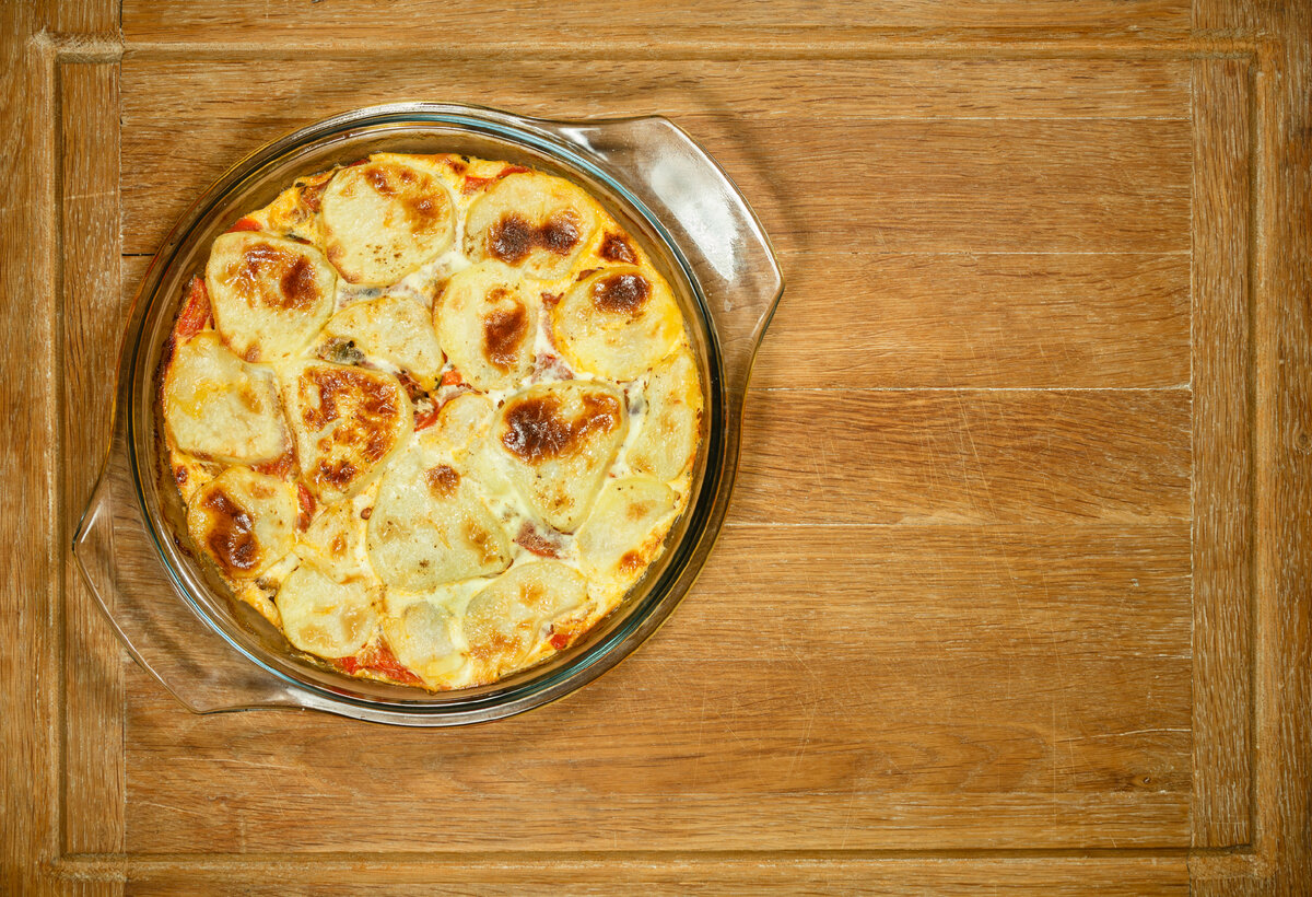 - Чтобы добиться хорошей корочки, стоит посыпать гратен тертым сыром или панировочными сухарями перед запеканием;