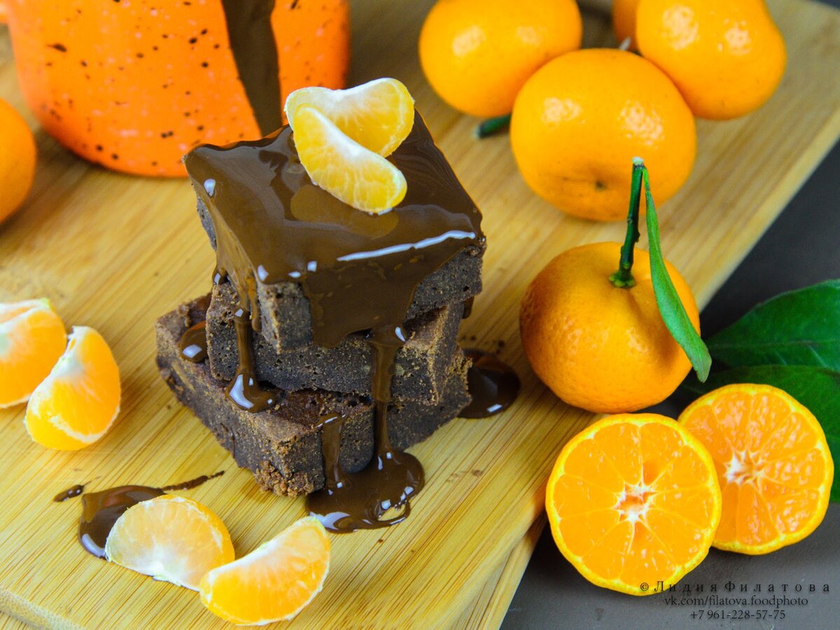 Сначала смешайте муку и какао с щепоткой соли в отдельной миске.Растопите сливочное масло, добавьте 100 г шоколада и тщательно перемешайте до получения однородной массы.Из половины грейпфрута и мандарина отожмите сок – вам нужно около 125 мл.В отдельной емкости взбейте яйца с сахаром до пышности. Затем влейте ванильный экстракт и добавьте цедру апельсина.В яичную смесь осторожно влейте шоколадную массу и перемешайте.Аккуратно добавьте сухие компоненты, делая это ложкой или силиконовой лопаткой.Переложите тесто в форму, выстланную пергаментом, и выпекайте при температуре 180 градусов в течение 30-45 минут, пока шпажка не выйдет сухой.После выпекания дайте брауни остыть, накройте пленкой и оставьте в холодильнике на ночь.Наконец, нарежьте на небольшие квадраты, полейте растопленным шоколадом и украсьте мандаринами.Этот десерт покорит сердца даже самых привередливых сладкоежек. Приятного аппетита!