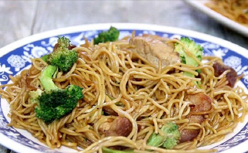 Спагетти варятся отдельно до состояния аль денте. Затем их перемещают в сковороду к мясу и овощам, добавляется соевый и устричный соусы, сахар, соль и немного горячей воды. Все ингредиенты тщательно перемешиваются и готовятся на слабом огне.