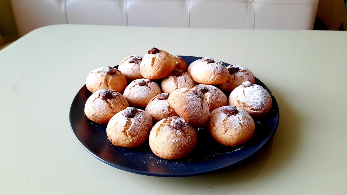 После того как тесто готово, формируются небольшие шарики, в середине которых делаются углубления для шоколада.