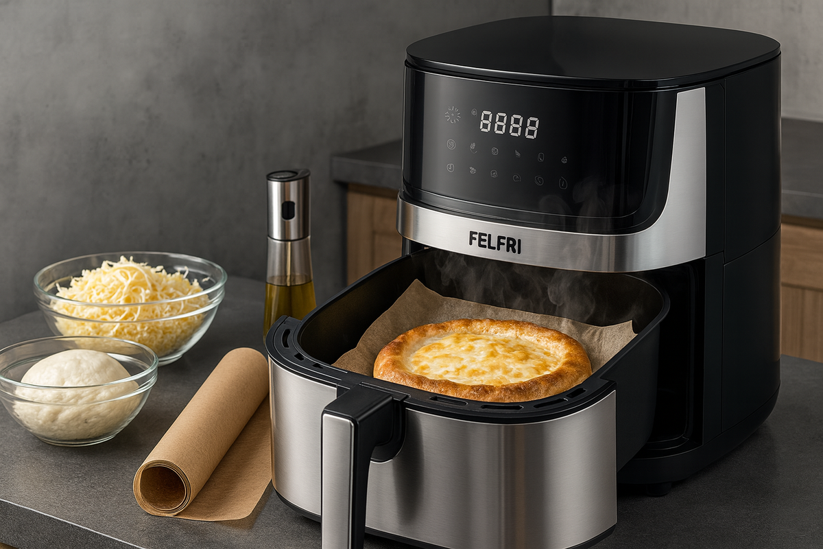 Аэрогриль FELFRI объемом 8 литров с мощностью 2000 Вт быстро разогревается, стабильно поддерживает нужную температуру и имеет таймер с программами для выпечки. Специальное керамическое покрытие чаши облегчает уборку и предотвращает пригорание.