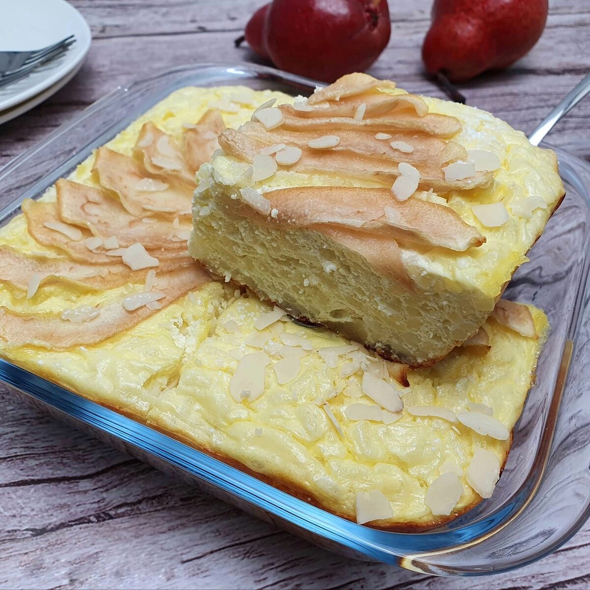 Отварить рис до готовности и дать ему остыть.Отделить белки от желтков. Взбить белки с щепоткой соли до образования устойчивых пиков.В желтках смешать творог, ванилин и подсластитель, затем пробить погружным блендером до однородной массы.Добавить остывший рис и тщательно перемешать, или еще раз пробить блендером, чтобы рисовые зерна не ощущались в готовом блюде.Очистить грушу от кожуры и сердцевины. Половину нарезать кубиками, а вторую половину — тонкими дольками. Кубики груши интегрировать в массу.Аккуратно ввести взбитые белки, перемешивая лопаткой движениями снизу вверх.Выложить полученную смесь в круглую форму диаметром 16 см или квадратную 15x15 см. Сверху украсить дольками груши. Выпекать в разогретой до 180 градусов духовке в течение 30-40 минут.Запеканка вкусна как в горячем, так и в холодном виде. Подавайте ее с медом, сметаной или ягода-ми соусами для дополнительного наслаждения.Приятного аппетита и отличного настроения!