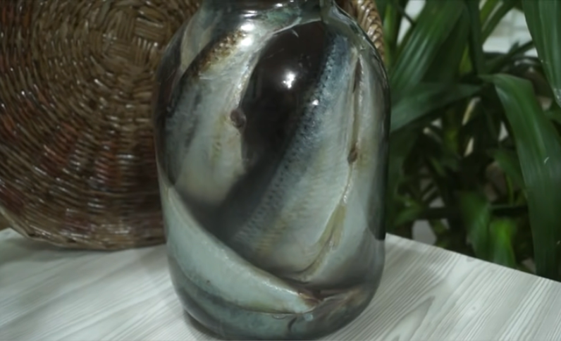 - Засолка: Залейте рыбу рассолом, закройте банку крышкой и уберите в холодильник.