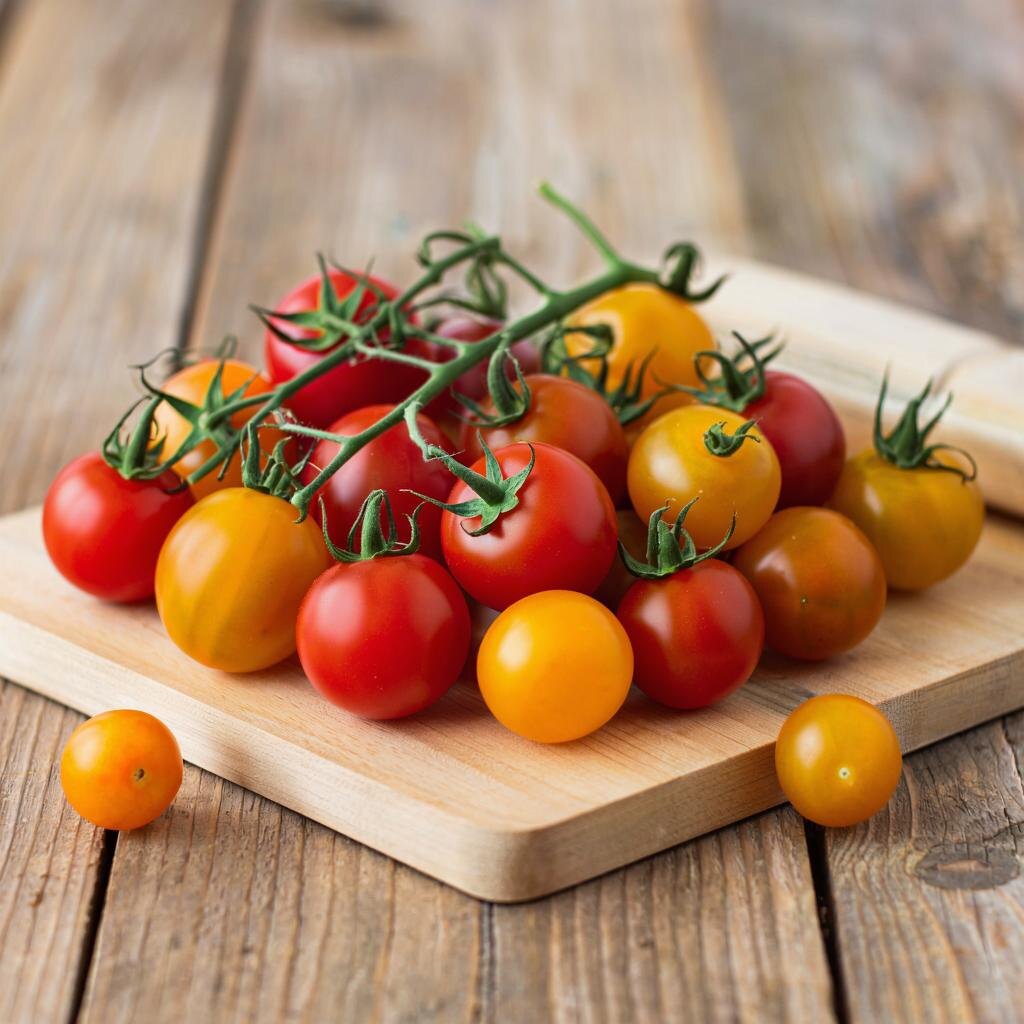 - Помидоры (лучше черри или сливовидные) — 500 г