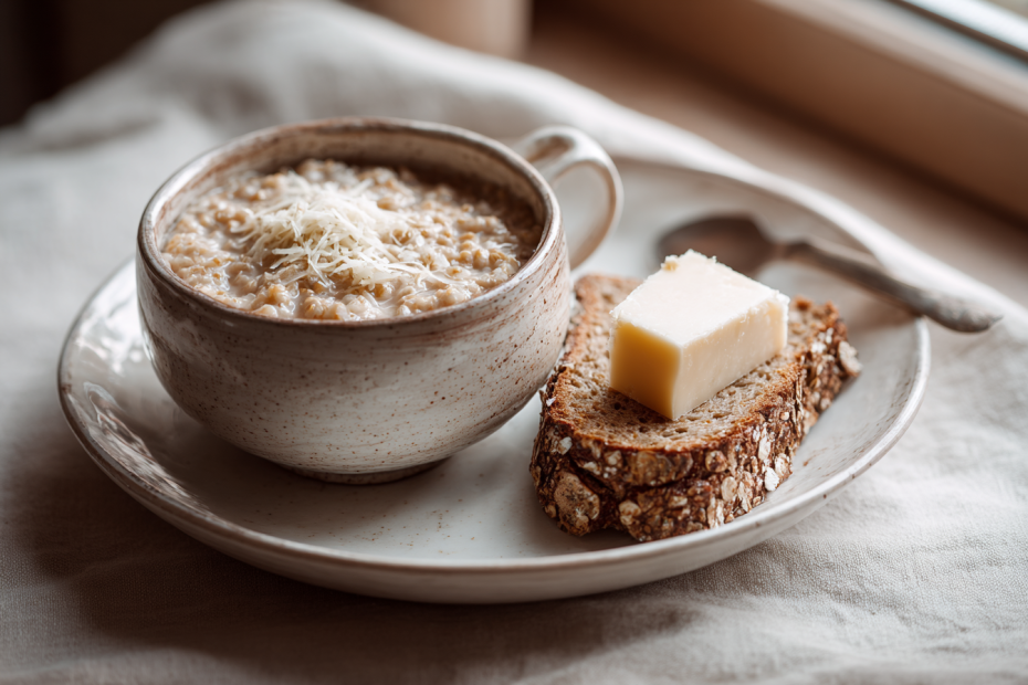 - Завтрак: гречневая каша на воде, цельнозерновой хлеб с несоленым сыром.