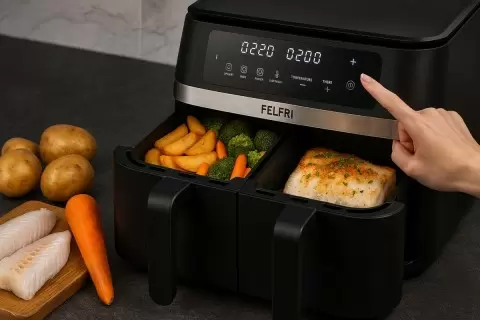 - Меньше жира и калорий благодаря использованию горячего воздуха, что делает блюдо более легким.