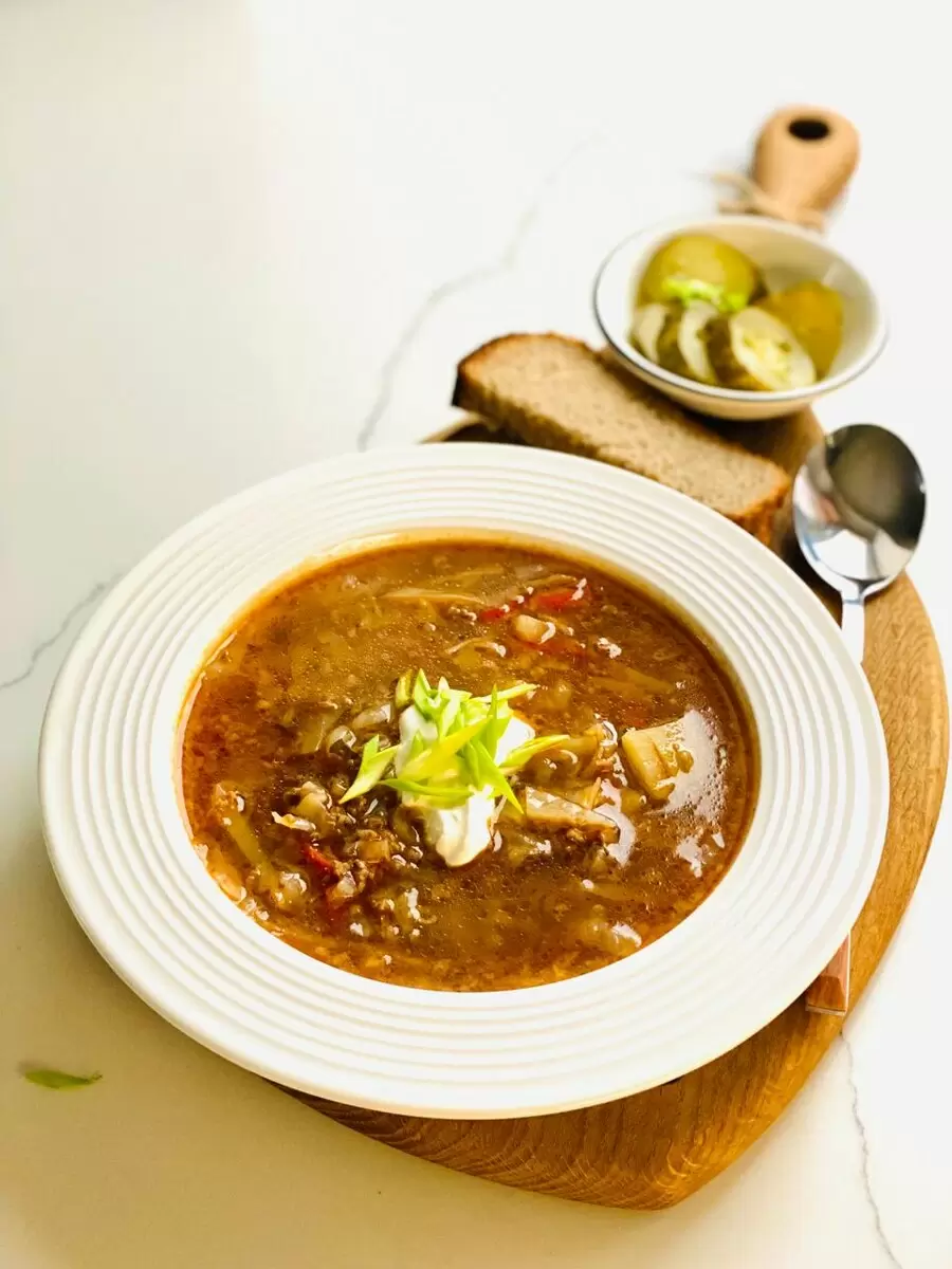 Угощение, которое согревает душу и дарит воспоминания о домашних вечерах — это щи с фаршем. Этот наваристый суп сочетает в себе разнообразие свежих овощей и сочного мясного фарша, превращая ужин в настоящую кулинарную симфонию.