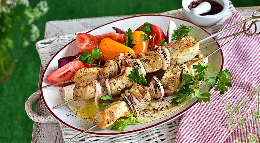Такой шашлык подается с свежими овощами или зеленью — ирина радости вам обеспечена!