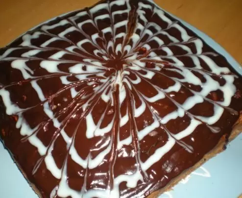 Когда кекс остынет, его можно украсить растопленным шоколадом, а затем добавить роспись из сгущенного молока, выполняя оригинальные узоры. Этот кекс не только удивит своим видом, но и порадует отличным вкусом!