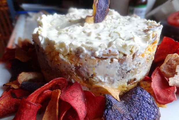 Процесс повторяйте до тех пор, пока не израсходуете все ингредиенты, завершив сборку слоем моркови с луком. Обильно покройте весь салат майонезом.