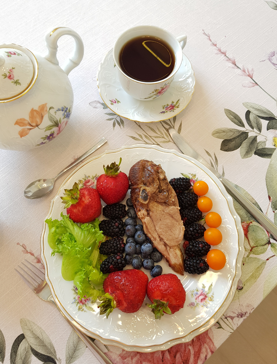 Готовую ножку ягнёнка нарежьте на порции и подавайте с разнообразными гарнирами. Отличным дополнением к этому блюду станут свежие ягоды – клубника, ежевика, голубика, а также помидоры черри и листья салата. Это комбинация не только порадует глаз, но и сделает вкус мяса особенно насыщенным.